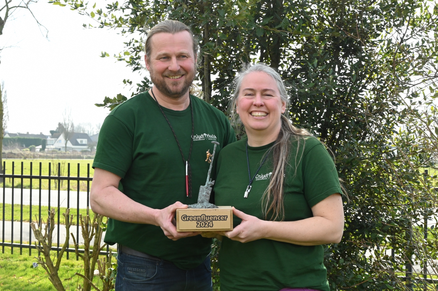 Jasper Helmantel en Jojanneke Bijkerk van Cruydt-Hoeck zijn vandaag uitgeroepen tot Greenfluencers 2024. Zij ontvingen de trofee uit handen van hoofdredacteur Willemijn van Iersel. Naast de titel Greenfluencer 2024 en bijbehorende bokaal, zullen beide winnaars eenmalig als gasthoofdredacteuren fungeren voor een editie van het vakblad Stad+Groen.